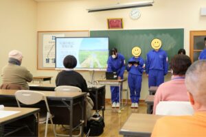 なんと3年生が東和創造学(地域学習)で取り組んだ東和の魅力発信を、ツアー参加者の皆さんにも見ていただこうという新しい試みです。中学生側から「私たちの発表を見て移住したくなってきましたか?」という質問が挙がり、笑いが起きる場面もありました。