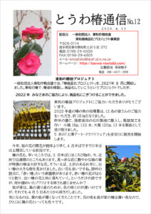更新情報 とうわ椿通信 No.12 2026年4月12日2026年4月12日 みなさまこんにちは春が足早に過ぎていきます。椿の花も咲き始めました。 今年度最初の「椿通信」です。昨年度の報告が遅れて申し訳ありませんでした。 とうわ椿通信 No.12(PDF) 今年も良質の椿油がいっぱい採れるよう頑張ります。よろしくお願いします。 多田悦子 「とうわのお土産 / いわて内陸とうわ椿」ページ